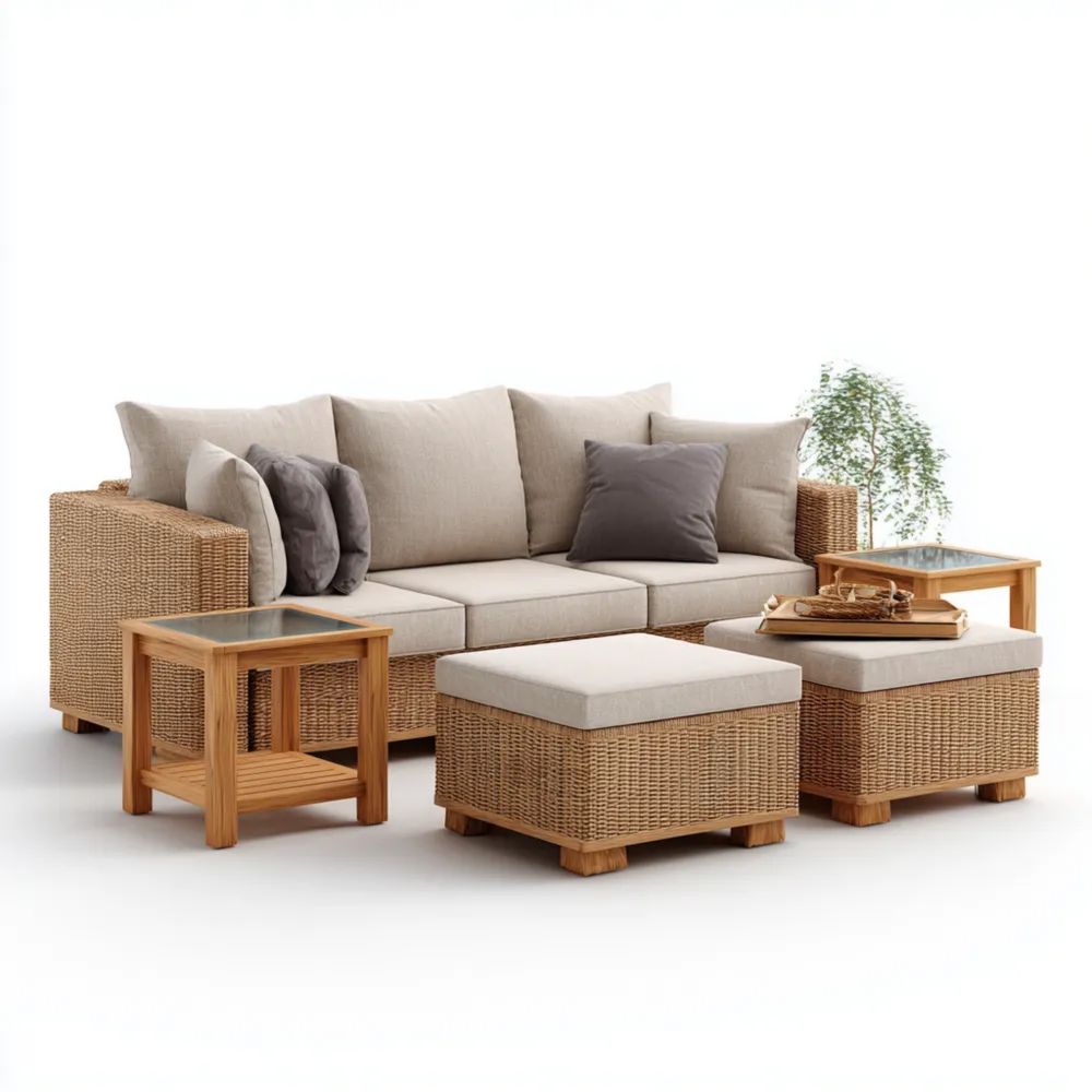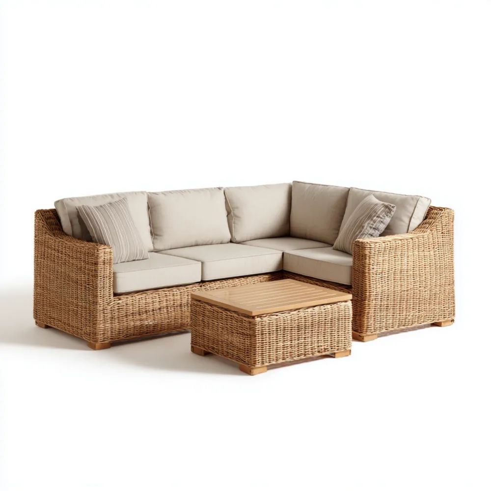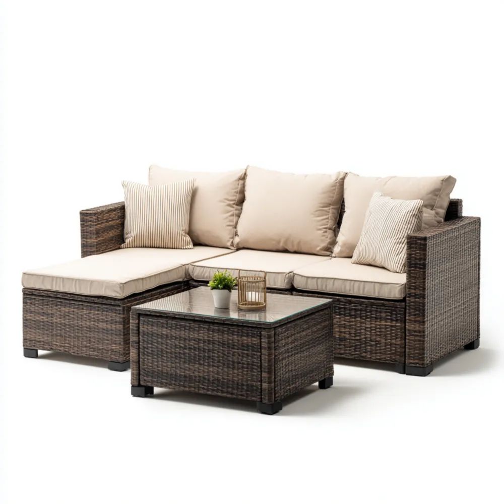 Garten-Sofaset Rattan 200x150x80 cm – Beige/Braun – Moderner Stil