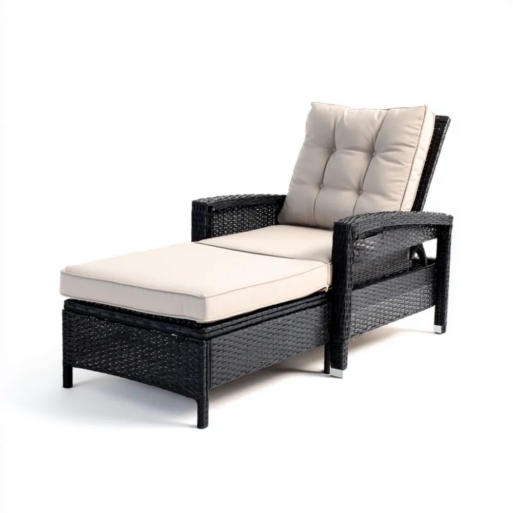 Garten-Sofaset Rattanoptik 160x75x80 cm Beige/Schwarz – für Terrasse und Balkon