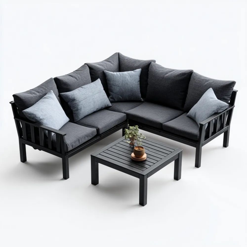 Garten-Sofaset Holzrahmen 210x210x75 cm - Dunkelgrau - Moderner Stil