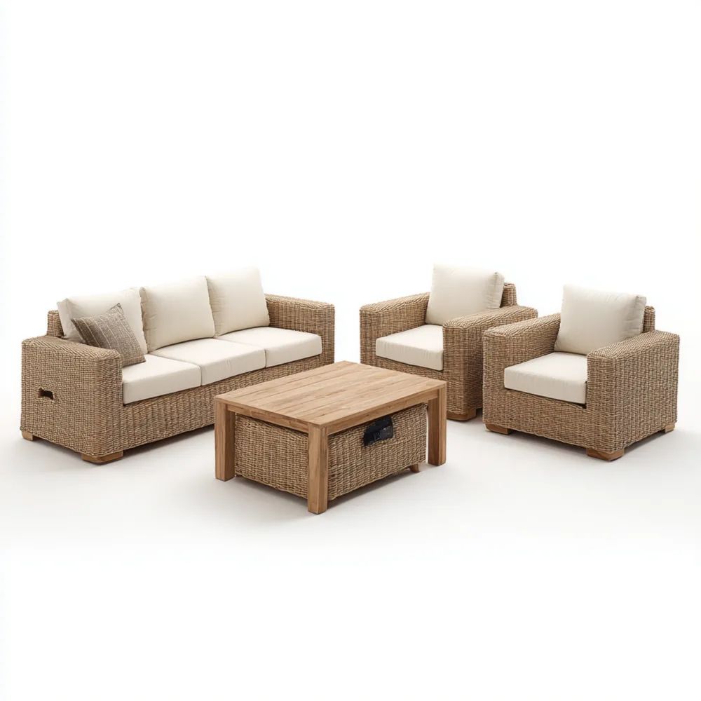 Garten-Sofaset Rattan 200x95x60 cm – Beige/Natur – Moderner Stil
