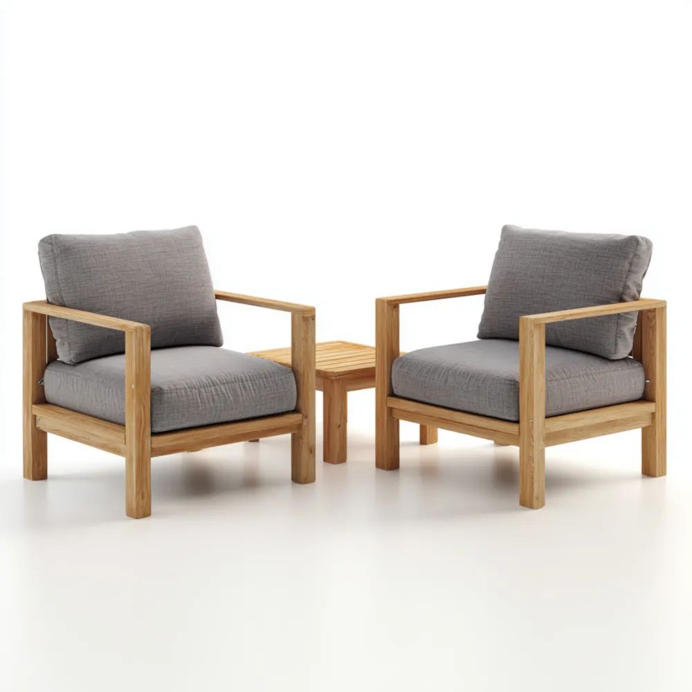 Garten-Sofaset Holz 85x80x70 cm Sessel mit Beistelltisch - Grau - Moderner Stil