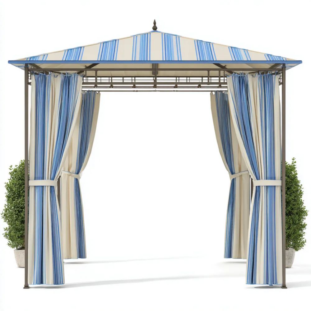 Pergola mit Vorhängen Metall 300x300x260 cm - Blau/Beige - Klassisches Design