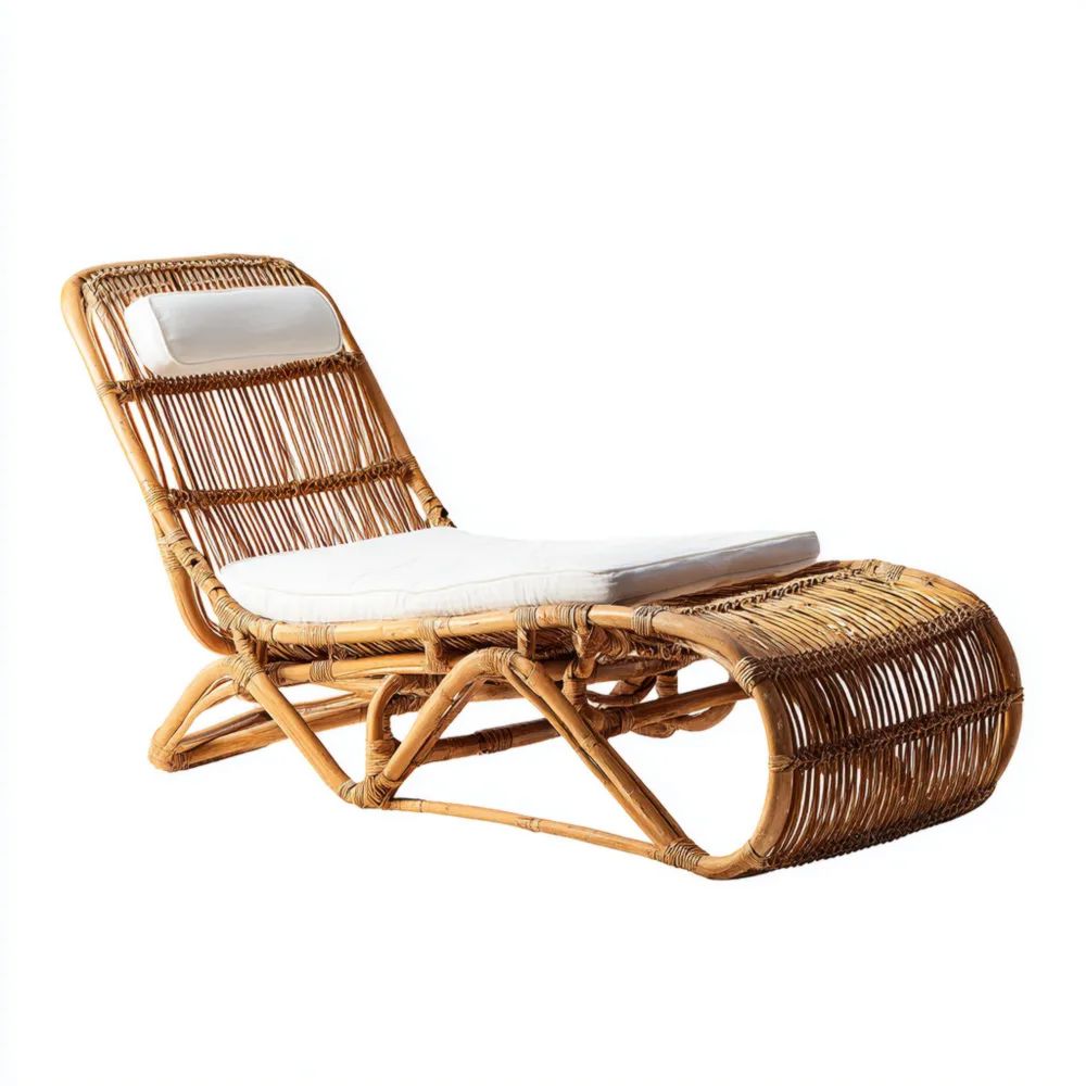 Gartenliege Rattan - 200x70x35 cm - Natürlich - Entspannungsfunktion