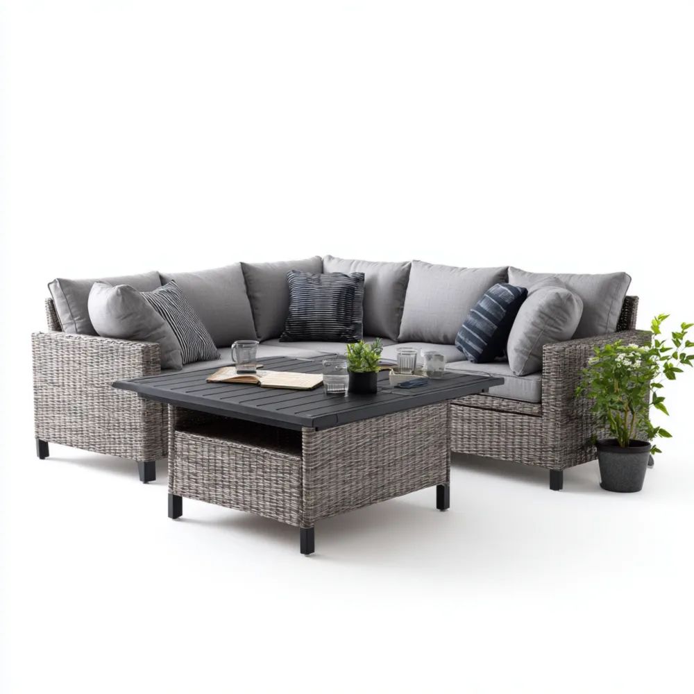 Garten-Sofaset Poly Rattan 200x250 cm – Hellgrau – Moderner Stil - Tisch 100x100x50 cm