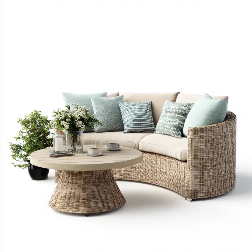 Garten-Sofaset Rattan 200x95x60 cm – Beige/Natur – Moderner Stil