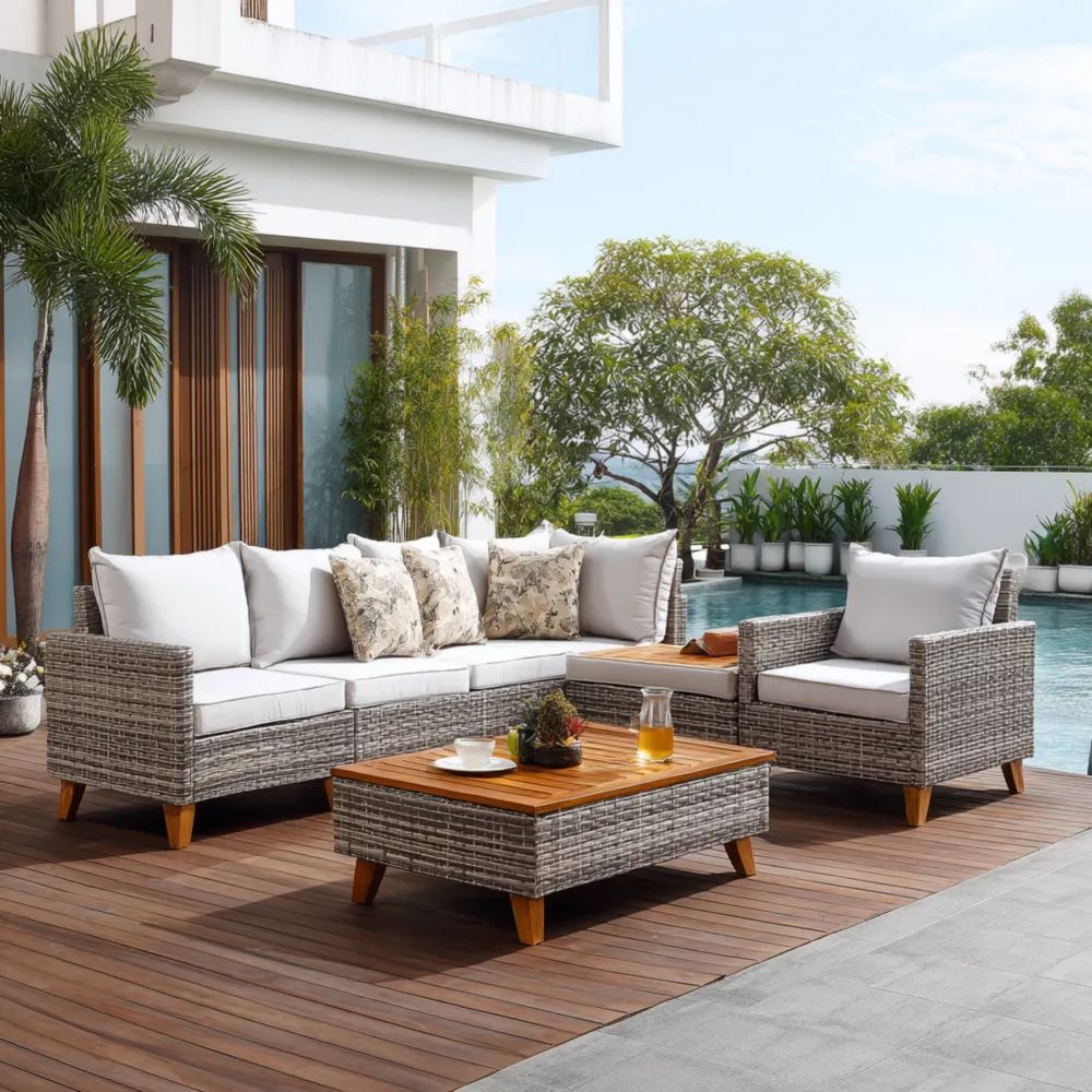 Garten-Sofaset Rattan 4-Sitzer mit Tisch – Grau – Modernes Design 220x80 cm